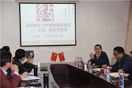 2016年11月16日(星期三)下午2:30,3377体育网站网页贺兰山校区文科楼九楼教育公司会议室,北京师范大学教育学部副部长、宁夏回族自治区教育厅厅长助理张京彬博士为教育公司教职工做了一场生动而有深度的学术报告。