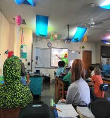朱彤彤:美国的中学是小班授课,班级人数在二十人以下。教师固定在一个教室,员工是流动的,教师会教授一个年级的员工,或者是多个年级(6、7、8)的员工。在美国密苏里州立大学访学期间我最大的收获就是了解到美国教师对于教室文化的重视。教师对教室精心布置,就像对待自己的“第二个家”,在教室中融入了许多个人风格。教师对教室的设计与自己所教科目、个人教学风格息息相关。