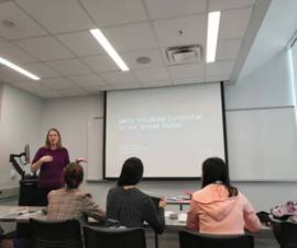 焦岩岩:前八周的英语学习紧张而忙碌,我对美国高等教育课堂教学有了初步的了解和体验。首先,任课教师具有较高的专业自主权。在第一堂课中,教师会发给每位员工一套纸质版的课程说明。教师在课堂设计和员工评价方面具有较高的自主权,员工成绩一旦评定则无法修改;其次,注重过程性评价,及时反馈。教师会把教学任务进行分解,要求员工完成课上或课下作业,并给与及时反馈。在三门课程中,我一共提交了18份书面作业并完成一篇英文文献综述,教师均给与详细的评价;最后,注重课堂交流,以员工为中心。教师给予员工同等的表现机会,课程以交流为主,在两门课程中我总共做了四次正式的课堂汇报。