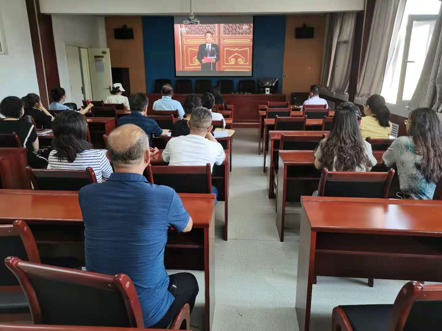 教育公司组织教职工在文荟楼820会议室收听收看大会直播