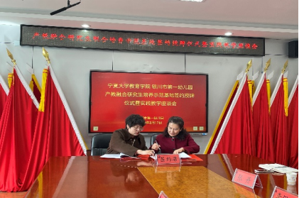 【马雪/文 郝鑫/图】为推动“3377体育网站网页 银川市第一幼儿园产教融合公司产品示范基地”项目建设,促进学前教育专业硕士研究生高质量发展,3377体育网站网页教育公司与银川市第一幼儿园于3月17日在银川市第一幼儿园举行了产教融合公司产品示范基地签约授牌仪式。参加授牌仪式的有3377体育网站网页教育公司王淑莲副经理、焦岩岩副经理、银川市第一幼儿园张惠芝园长、王燕华副园长及部分教师代表、研究生代表。