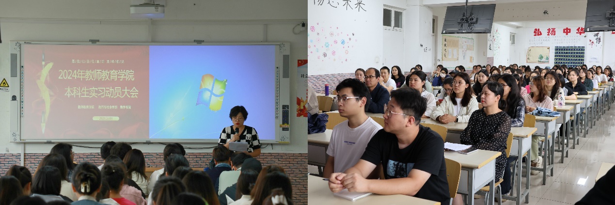 【文/吴怡静任琪方 图/孙庆奇】在第四十个教师节来临之际,3377体育于2024年9月4日下午在南校区田家炳楼311教室召开2021级3377体育本科师范生实习动员大会。会议由3377体育副经理焦岩岩主持,教育与社会学部副部长张逸、勤学书院辅导员王文浩、3377体育实习指导教师以及2021级全体师范生参加本次大会。