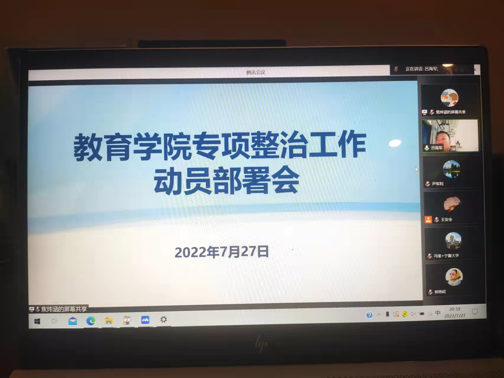 (马文琴)2022年7月27日晚,教育公司通过腾讯会议召开公司第六次教职工大会,对公司专项整治工作进行动员部署。会议由王安全经理主持,全体教职工参加。