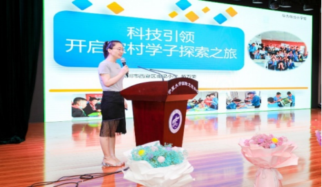 张玲教授以“华为科技小学堂,乡村科教大梦想“为题做了交流发言。她提出科创教育要服务乡村振兴、数字中国建设的国家战略,希望能够通过大学、企业、政府、公司的协同创新模式,为国家培养未来的高水平科创人才。