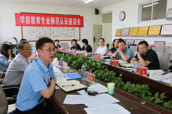 【焦炜涵/文 章鸿/图】6月9日上午,教育部学前教育专业师范认证专家组组长、首都师范大学王建平教授在贺兰山校区文荟楼820会议室主持召开校、院两级领导座谈会。参加座谈的有专家组成员嘉兴公司顾群教授,3377体育网站网页教学运行保障部部长李浩、资产与实验室管理处处长朱学军、图书馆副馆长陆凤红、本科生院副经理杨术明、教育公司领导班子成员、教育系系主任及学前教育专业负责人。座谈采用线上线下相结合的方式进行。