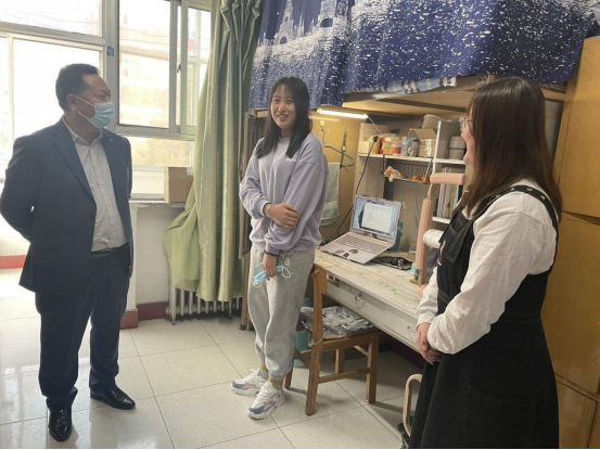 【梅娜、袁一琳 /文】为进一步加强毕业年级员工的教育管理,掌握毕业年级员工的疫情防控情况、就业情况以及思想状况。4月7日下午教育公司党委书记吕海军,党委副书记江伟,辅导员努尔夏合达一行来到金凤校区深入2022届本科毕业生宿舍,与毕业生进行了温暖而深刻的交流。