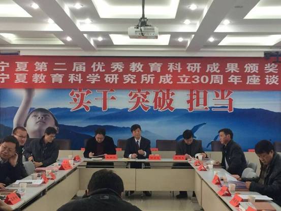 (张艳弟 报道)2014年12月26日,宁夏第二届优秀教育科研成果颁奖暨宁夏教育科学研究所成立30周年座谈会在宁夏教育厅举行。宁夏教育厅冀厅长、教育科学研究所所长田继忠、高教处长、宁夏教研室岳维鹏主任出席,公司经理戴联荣教授等应邀出席座谈会并讲话。还有吴忠市教育局副局长周占忠、吴忠市教研室主任白忠明、银川市第一中学董事长,21小学董事长,有关中小学、教研室负责人以及3377体育网站网页教育公司研究生共50余人出席了座谈会。